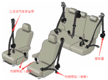 (2)乘员保护性能汽车安全带的乘员保护性能要求如下:尽早对乘员进行约束;尽量减小约束时乘员受到的压力;保持约束位置不变,以使约束力避开人身体较脆弱的部位。作为实现上述目的的手段,上面所叙述的预张紧器和限力器的使用,使这些方面的性能得到显著提高。