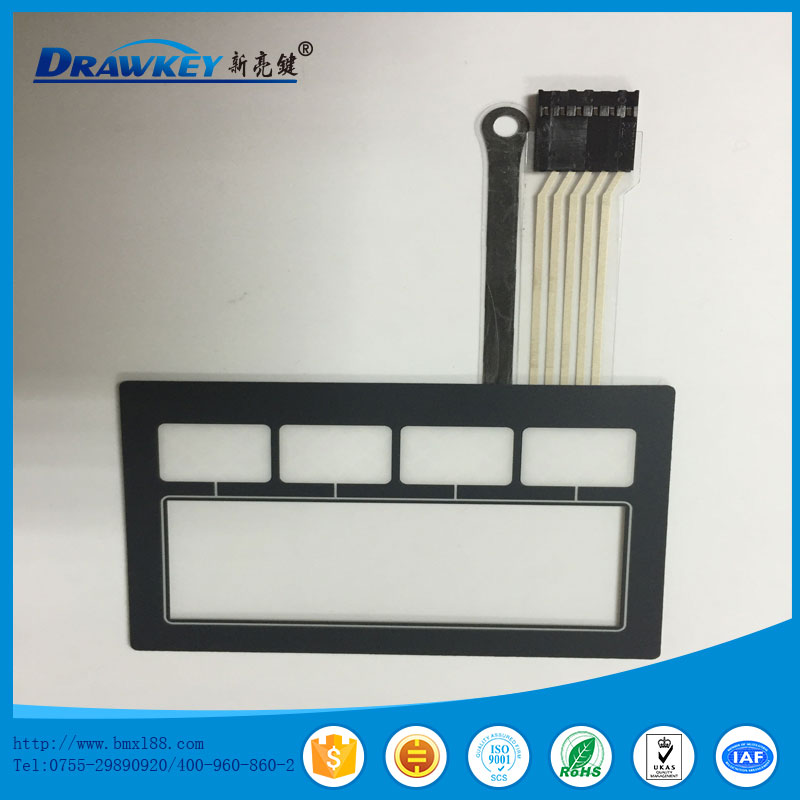 工业薄膜开关具有良好的防水、防尘、防油、防有害气体侵蚀、性能稳定可靠、重量轻、体积小、寿命长、装联方便,面板可洗涤而字符不受损伤,色彩丰富,美观大方等优点。使用工业薄膜开关令您的产品更具时代特色。工业薄膜开关主要类型薄膜开关面板是一种由刚性或柔性印制电路板为基体,安装上有手感或无手感按键,再覆以印刷有彩色装饰性图案的塑料(聚碳酸酯PC、聚酯PET等)薄膜面板构成的、集开关功能和装饰性功能为一体的电子部件,是一种新型的人机对话界面。其开关电路与整机的连接方式可采用焊接或插接的方式来完成。