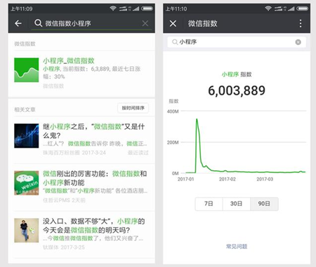 历经一年的等待,微信小程序在2017年1月9日凌晨终于揭开神秘面纱,正式上线,然而用户的满意程度根本没有达到预期的想象,很多人都认为张小龙走了一条错误的道路,黔驴技穷了,而在3月23日晚,微信官方悄悄的推出了“微信指数”功能,这是微信的扳回一局的前奏,还是会走上小程序同样的道路呢?