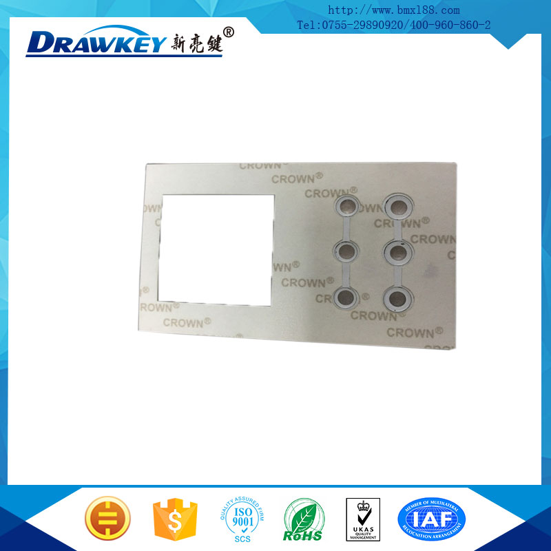 PC面板为平面型,多层组合,密封式结构,是集按键开关,面板功能标记,读数显示透明窗,指示灯窗孔及电路为一体的电子整机操纵系统的总成。