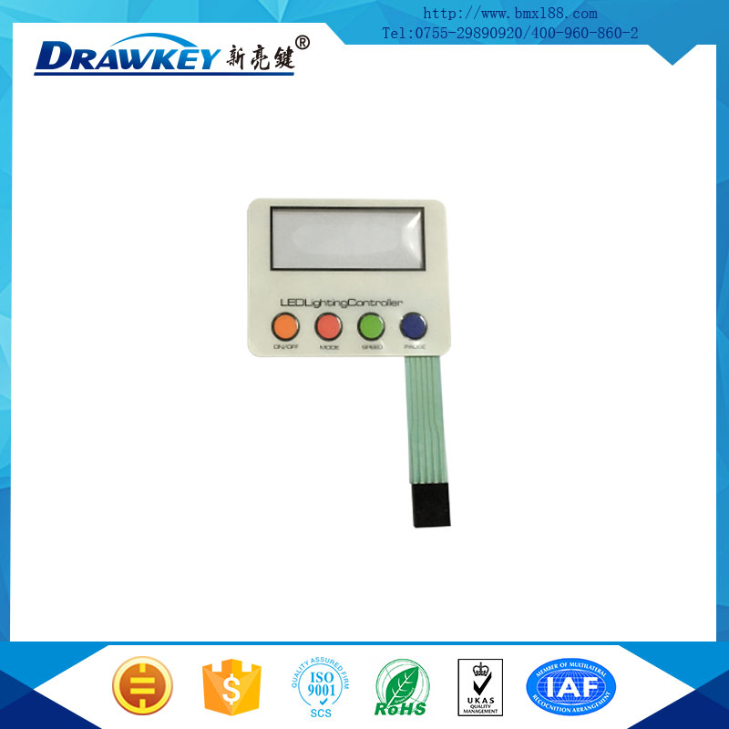 薄膜按键开关的电路可采用碳浆、银浆、铜铂等印刷,导电层可随意折叠;且电阻可以控制在您想需要的任何电阻,并且,采用特有的技术,所制成的薄膜开关甚至可以接受十几万伏的高压电击而不损伤其功能。