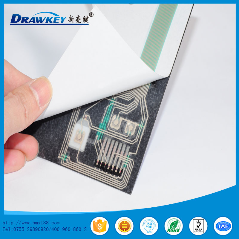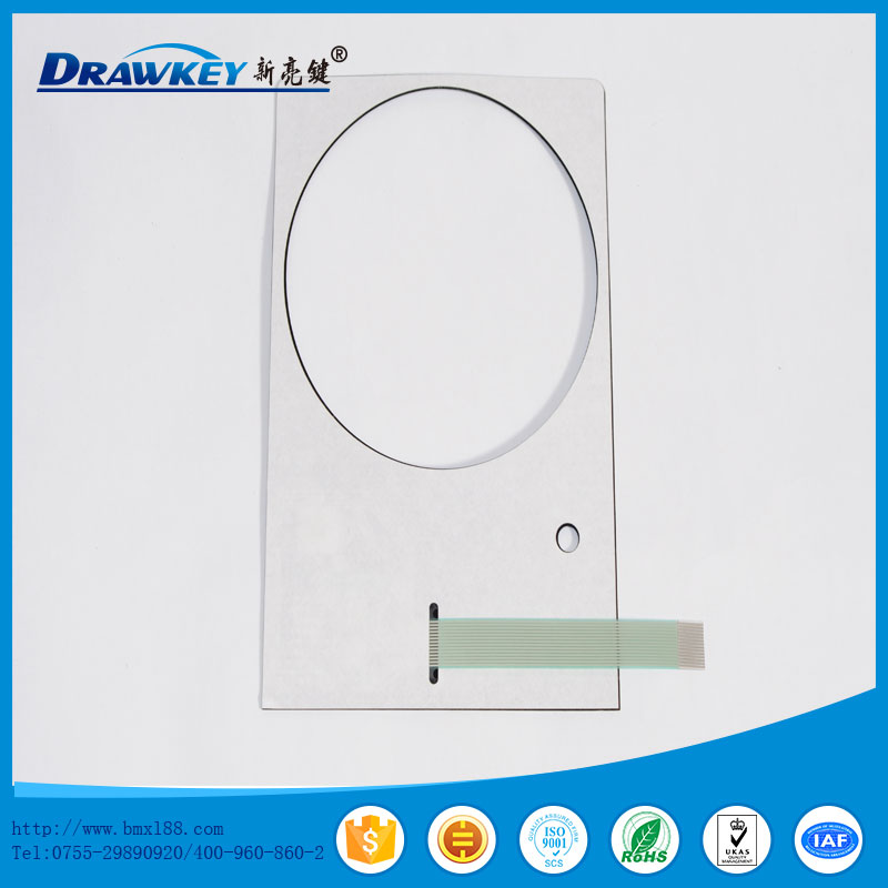 薄膜面板是在PVC、PC、PET等柔性塑胶材料印刷上既定的图形、文字说明等并配以不同材质的双面胶