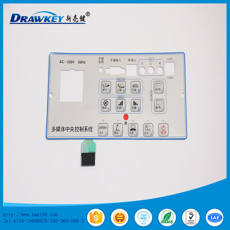 薄膜数字按键面板可以根据使用者的设计构思,在色彩的图案的设计上体现个性化,在装饰效果上体现出材质美,装饰美,工艺美的综合特征。