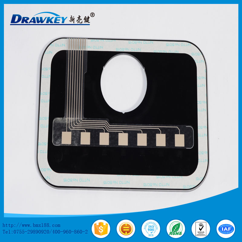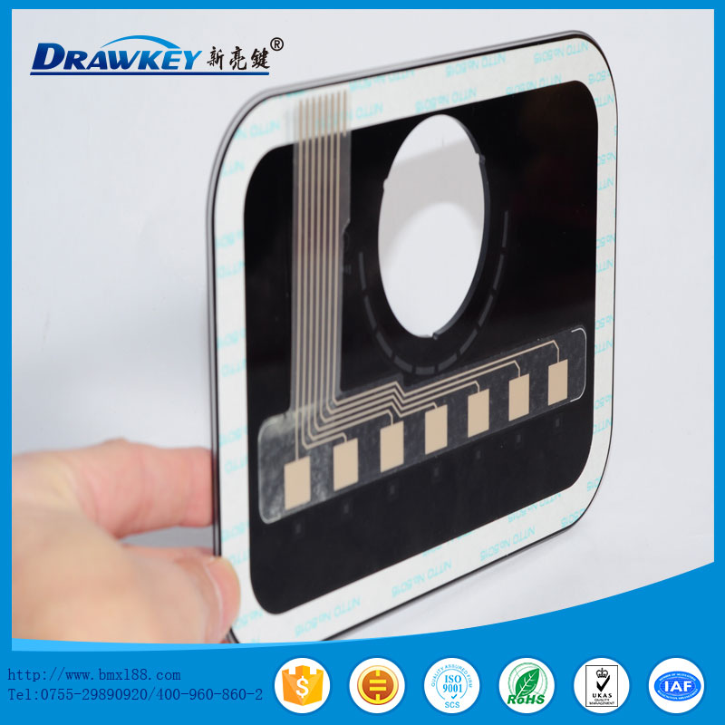 薄膜面板是近年来流行的一种集装饰性与功能性为一体的文字标记,商标。在PVC、PC、PET等柔性塑胶材料上印刷既定的图形、文字说明、透明窗等,粘贴上不同类型的双面胶,制作而成的用于起标识和保护作用的塑胶制品。薄膜面板外形美观,图文清晰,密封性好。