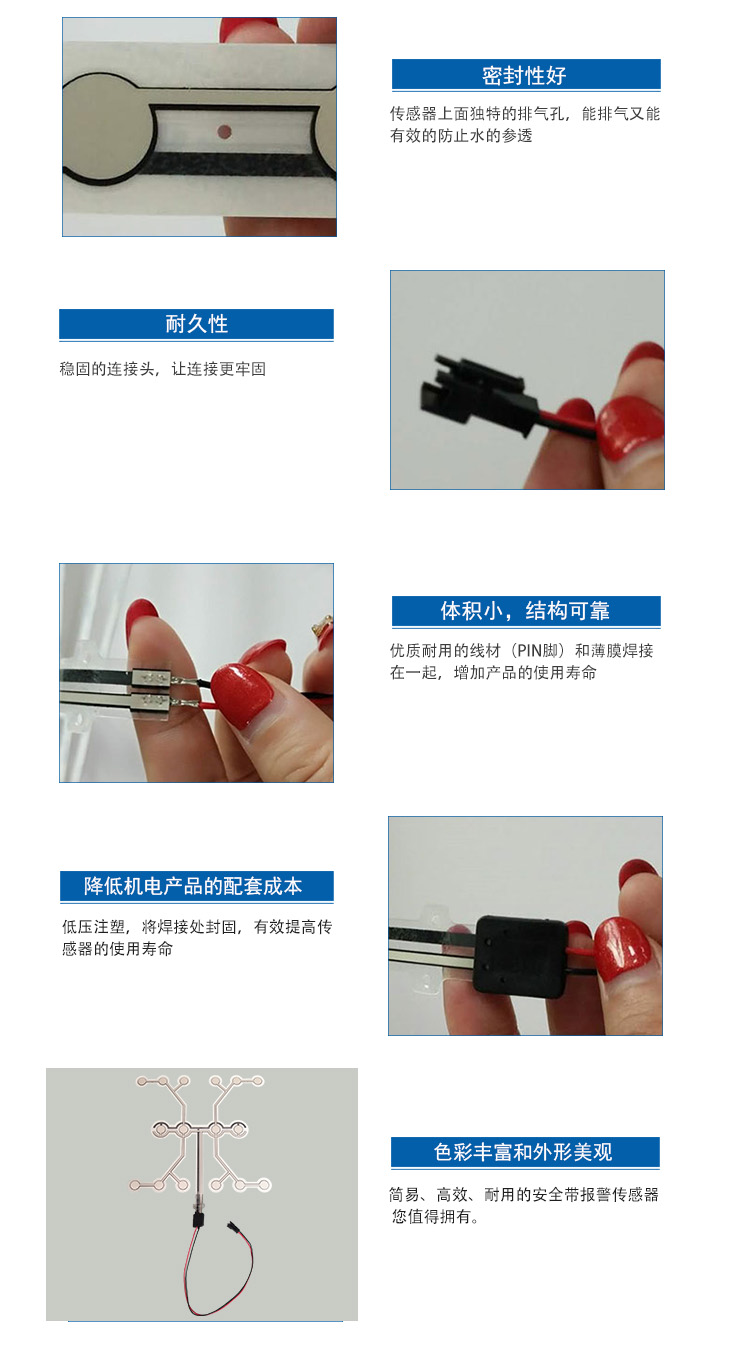 越野车座椅传感器应用于汽车座椅、越野座椅等等,如汽车安全带佩戴的感应等。