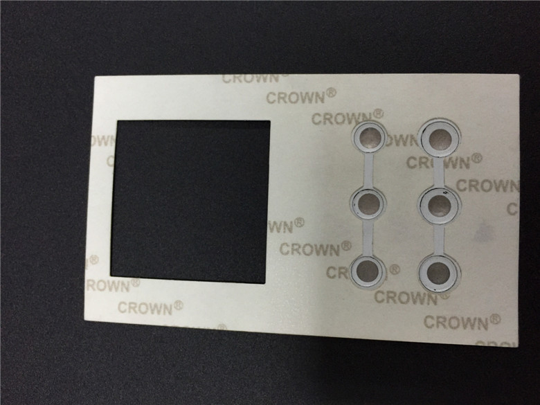 █ 印刷:面板的网印工艺与一般塑料薄膜网印工艺相似,只是面板的印刷是印刷在面板背面,即印刷在面板的非触摸面,以保证薄膜开关面板上的图案、字符清晰,不受磨损。塑料油墨品种繁多,但性能各异。油墨的干燥时间表干大约为0.5 h,实干则需5 h以上。
