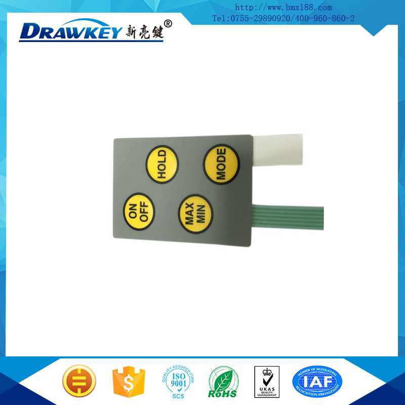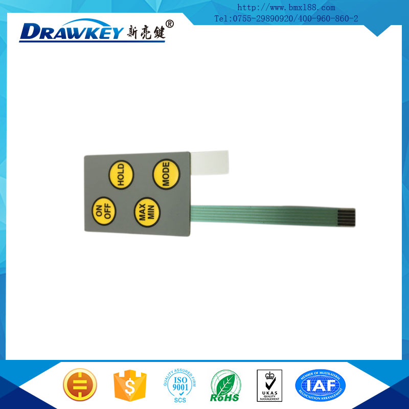 防水IP6薄膜按键是整体密封结构,开关的触点不受有害气体的侵蚀,不易氧化,具有防水防尘的特点,从而更适用于各种恶劣的环境。