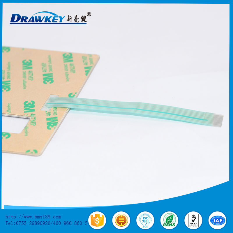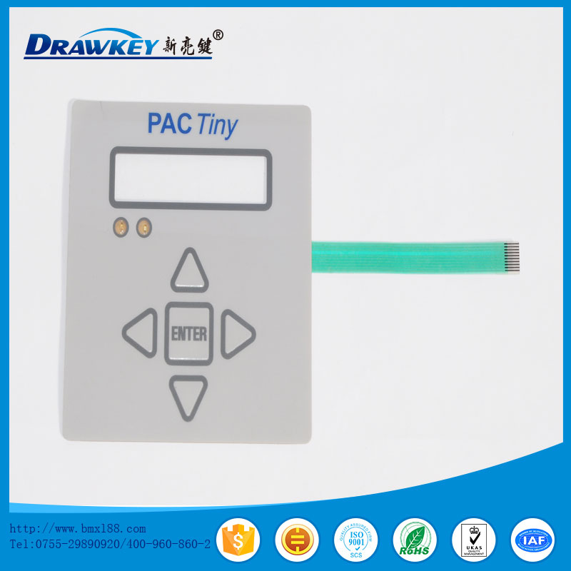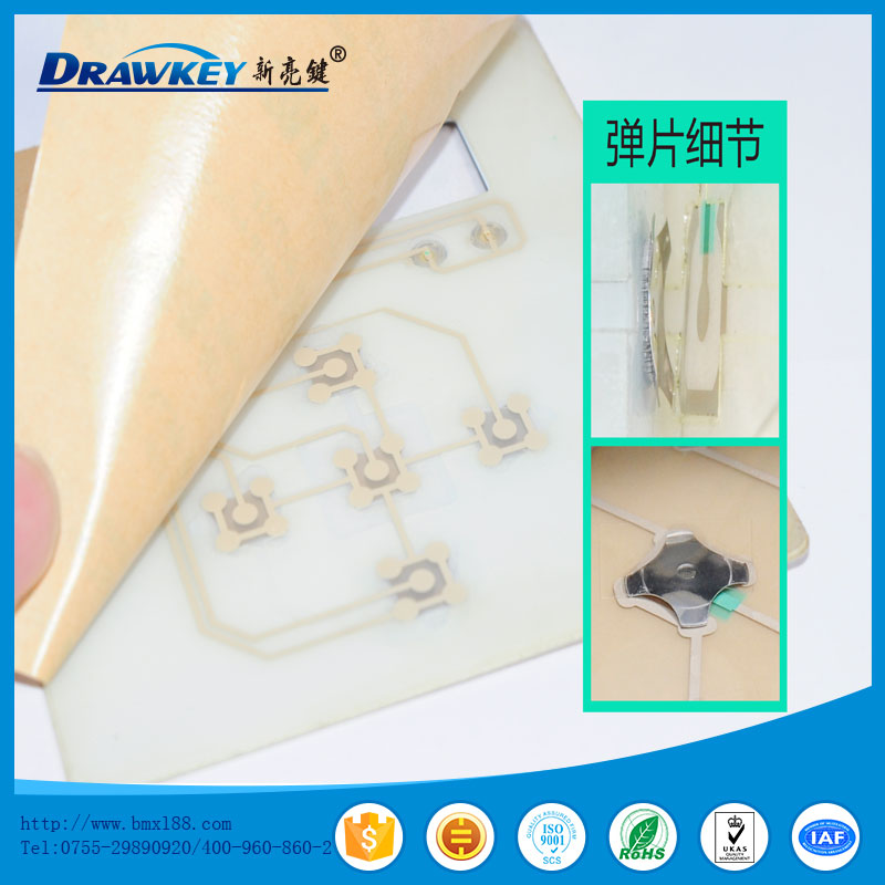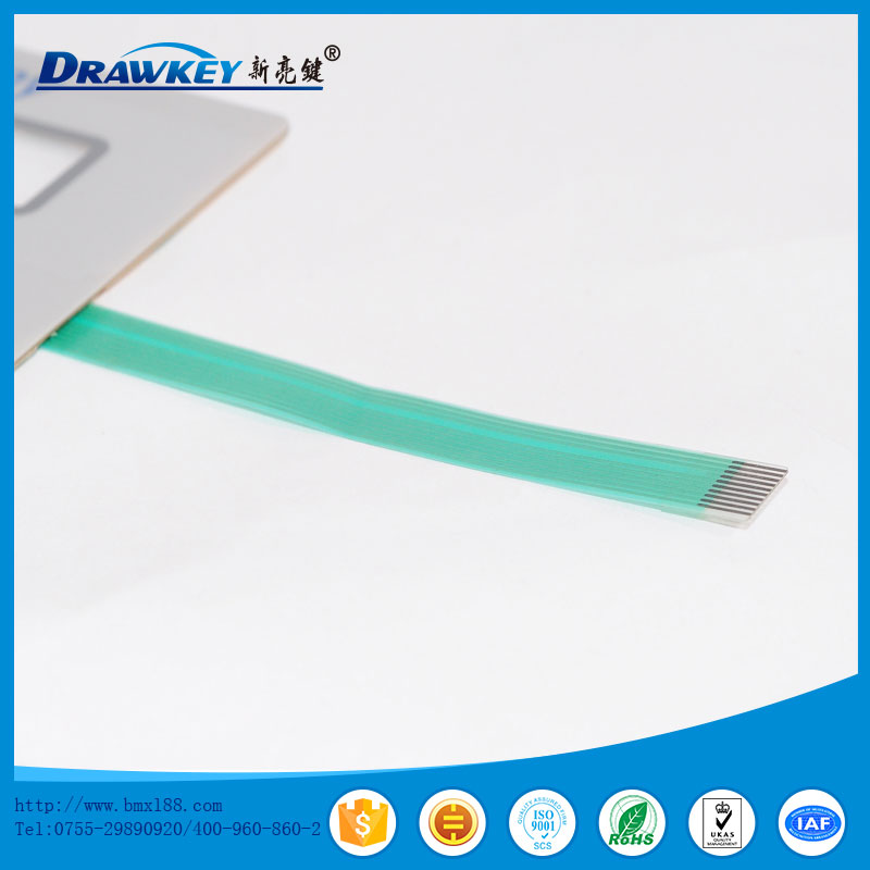 薄膜开关又称轻触式键盘、薄膜面板等,是采用PC,PVC,PET,FPC及双面胶等软性材料,运用丝网印刷技术制作而成的多平面组合密封的集图形、按键、标记符号显示、导电及电子开关功能于一体的塑胶电子制品。