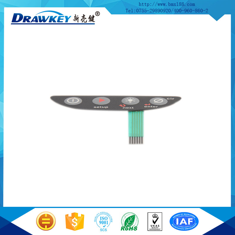 pet薄膜开关面板具有耐久性、密封性、体积小,重量轻和结构可靠、色彩丰富和外形美观、降低机电产品的配套成本等特点。广泛应用于智能化电子测量仪器,医疗仪器,计算机控制,数控机床,电子衡器,邮电通讯等各类工业领域。