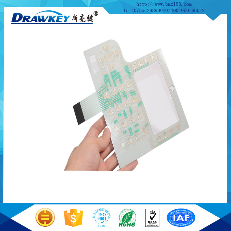pet线路板在设计上可以排列组合成薄膜开关键盘,且有多层薄膜组合而成,所有开关之间的连线及引出线是由丝网印刷一次性而成,总厚度一般在1mm以下,因此缩小了体积,减轻了重量,提高了可靠性。