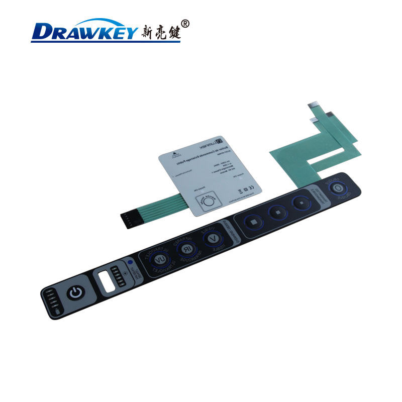 机械薄膜开关是集按键开关、面板功能标记、读数显示窗、指示灯透明窗、开关电路引出线以及常规面版上所要标注的文字、符号、装饰内容为一体,从而构成电子操纵系统的总成。