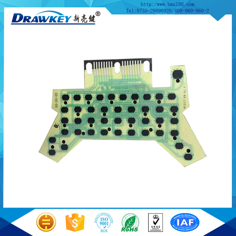 玩具软性线路就是采用PET薄膜,PC薄膜将导电银浆,导电碳浆根据客户的IC矩正而画好的图纹通过丝网印刷出来的产品:主要用于防水,防油污,超薄的一些产品上面,如防水键盘,机器用薄膜开关,薄膜天线,玩具学习机,玩具早教机上面。