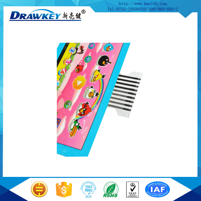 玩具碳膜片就是指玩具学习机,早教机等超薄产品进行语文发生时需要形成的导电线路,有的叫玩具开关线路印刷,有的叫玩具碳浆线路,一般便宜的玩具都是采用导电碳浆印刷上去的,正规大牌厂的般都会采用导电银浆线路,因为导电碳浆电阻高,稳定性差,导电银浆稳定性好,电阻低,使用寿命长!