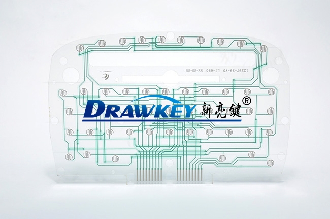玩具薄膜线路是一种以PET薄膜为基材制成的柔性线路板,并具有可挠性。三层设计,上、中、下三层导电膜,上、下层分别印有电路连线及按键触点,中间隔层上有上、下触点层对应的圆孔,隔层的作用是防止上下层电路短路。