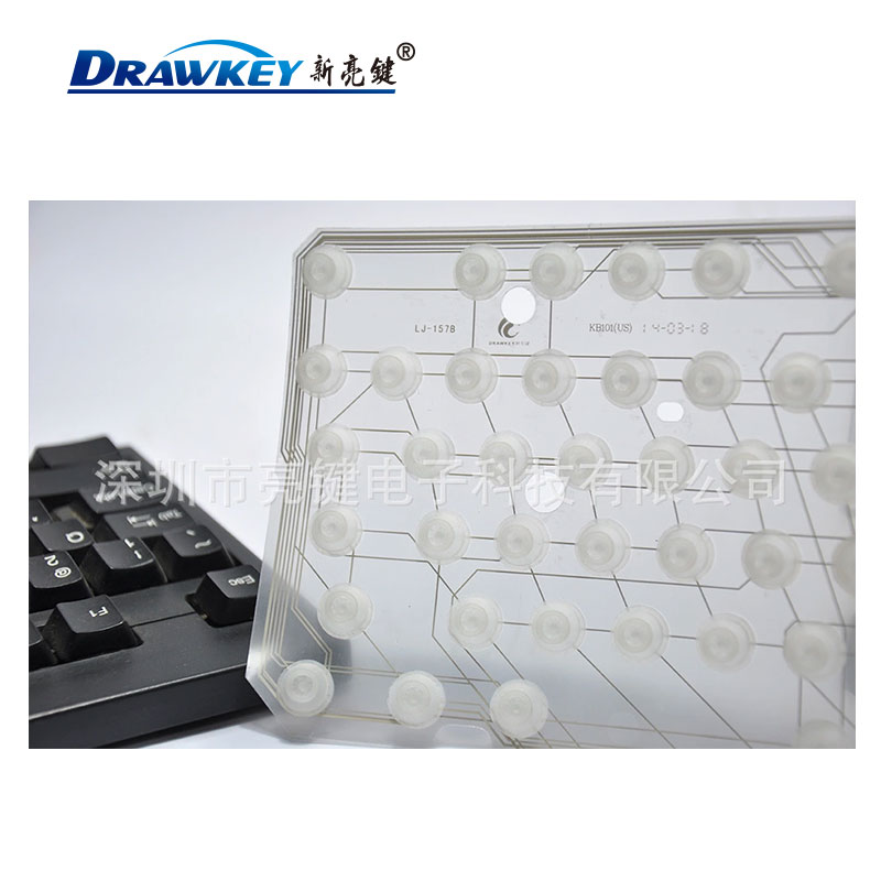 电脑键盘导电薄膜采用高精度丝网印刷,精密模具冲型,保证良好的电器性能,使用手感好,进口AB胶粘的硅胶不会掉 抗氧化力强,接触轻,手感好,纯银线路阻抗低,粘硅胶不会掉